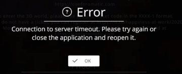 8) If the app starts, but shows error message "Connection to server timeout", the problem might be in your company VPN. Please close the app and start it again after switching off the VPN.