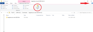 2. File in the .zip will be downloaded. Open the downloaded file. Before you can run the app, you have tu "unzip" it.. Click on "Extract all", then you can choose destination (I recommend to keep the suggested path or select "desktop") and then choose "Extract".