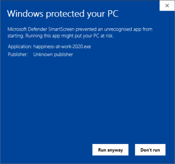 6. Open "More info" (or similar wording) and after that click on "Run anyway".