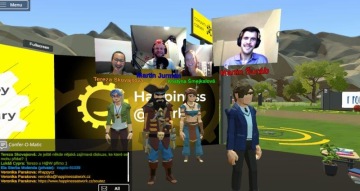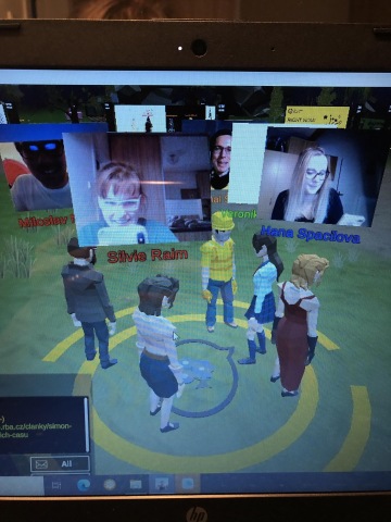 Buď je potkáte přimo v chat zóně, a s vašimi kamerami a mikrofonem zapnutým se domluvíte, a nebo kdekoli ve světě jim napíšete každému s jinou barvou do soukromého chatu - “pojďme se potkat v této konkrétní chat zóně a tam se pobavíme a zapojíme do soutěže.”